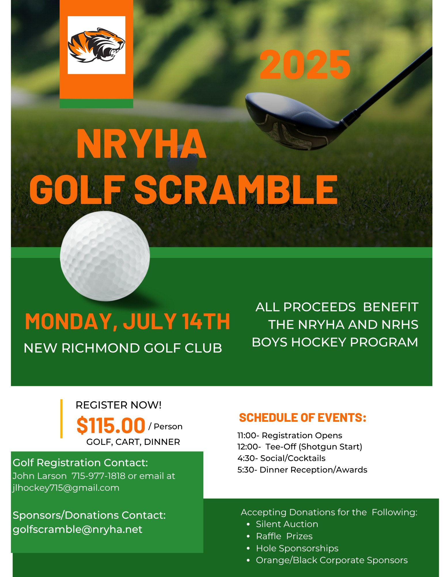 | Mon. July 14th | Noon Shotgun | NRYHA Scramble – Sign Up Here | |